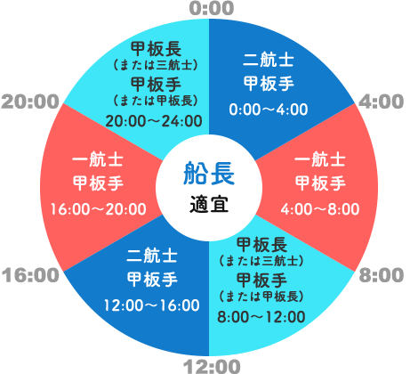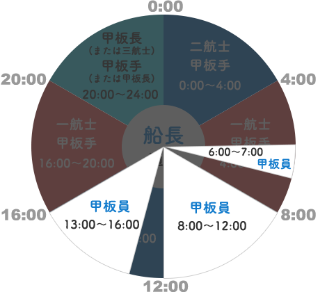 - 当直責任者として航海計器や双眼鏡を用いて見張りをし、船舶を操船指揮します。航海計画に基づき気象状況や潮流を考慮し目的地まで安全航海で運航します。